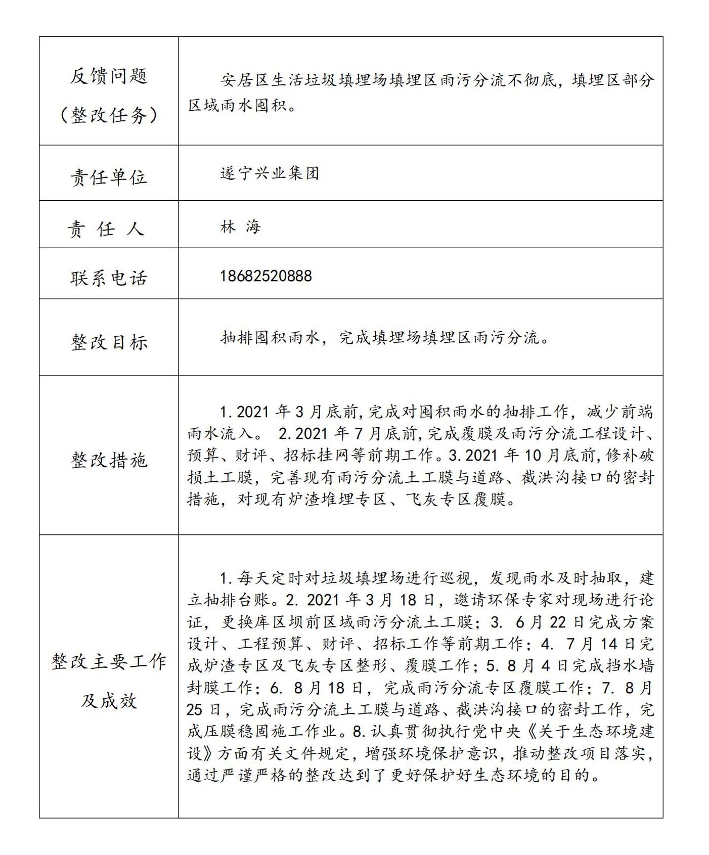 生態(tài)環(huán)境保護(hù)督察反饋意見整改任務(wù)完成情況公示表